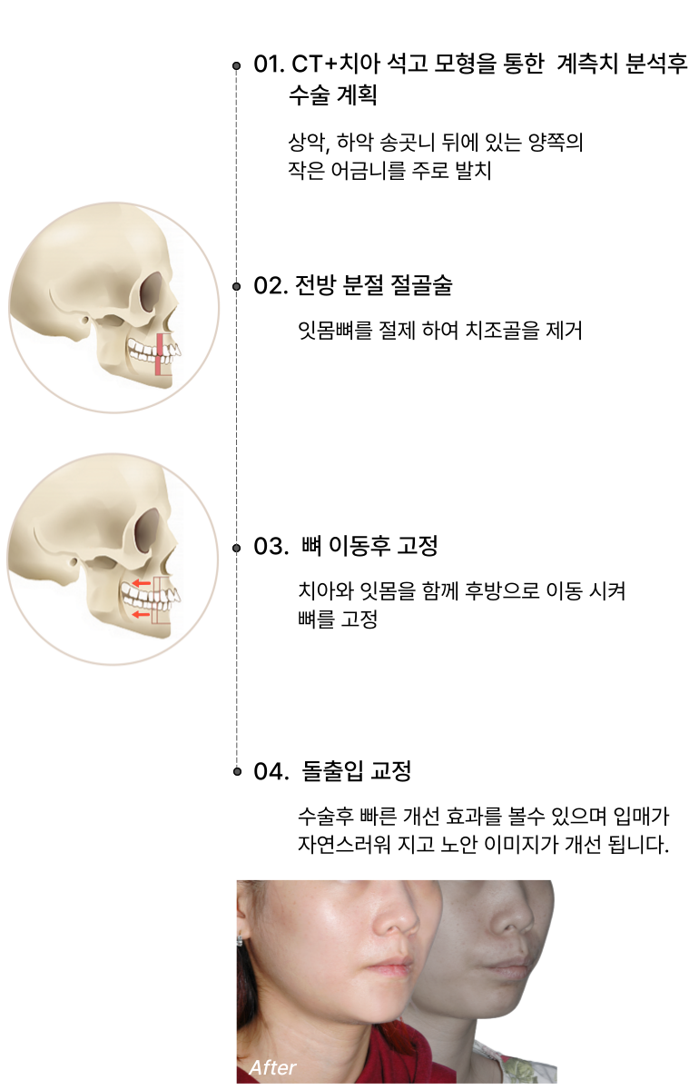 ③ 입이 돌출되어 표정이 퉁명스럽고 입술이 두꺼워 보이는 경우