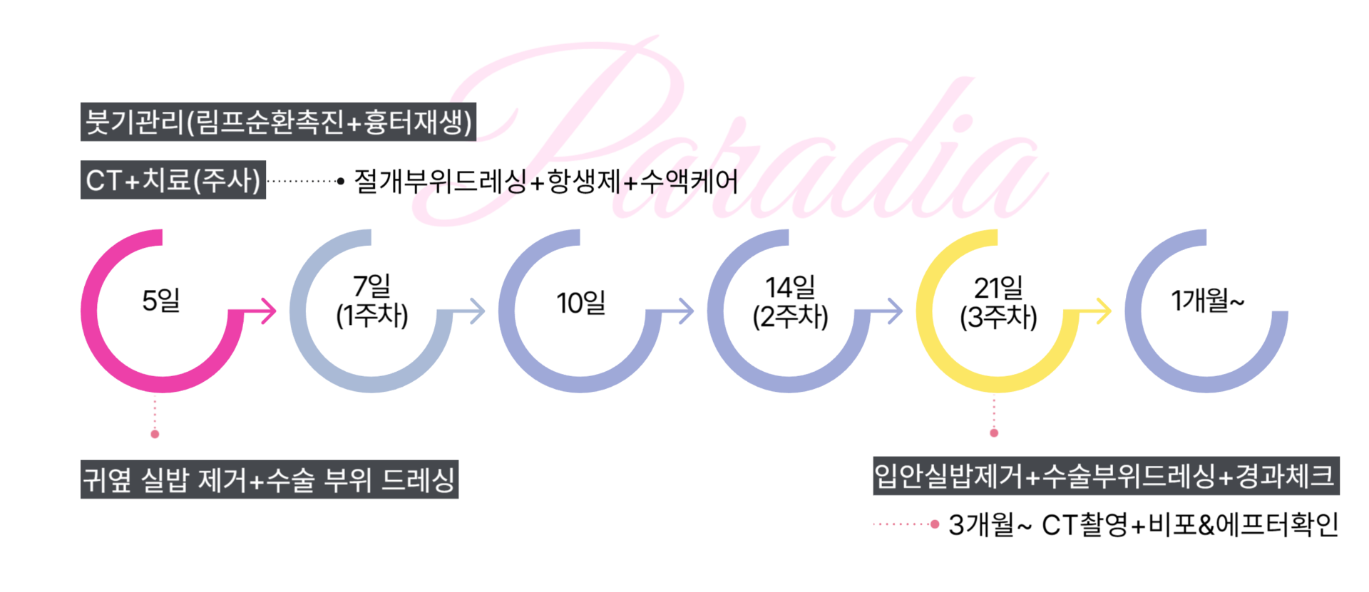 수술후 세심한 치료와 경과 치료 과정이 빠른 회복에 도움을 주며,