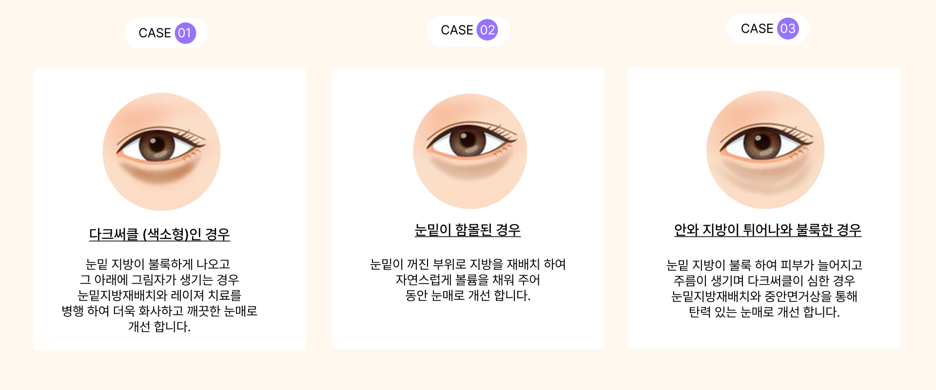 #01. 돌출된 눈밑지방과 다크써클을 동시에 개선