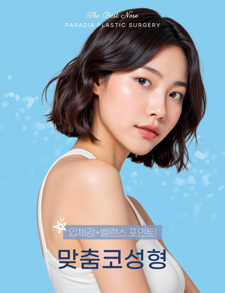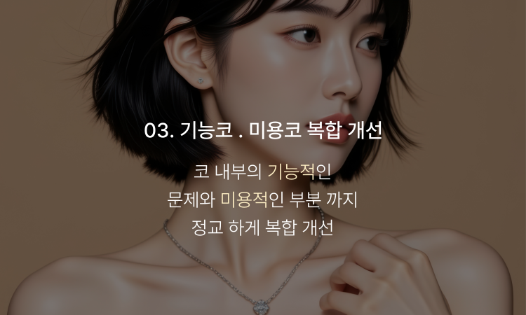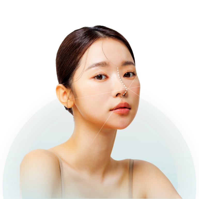 얼굴 전체의 조화와 균형을 고려 하여콧대 높이, 코끝 모양, 코끝 각도등세심하게 디자인 하여 만족스러운 결과