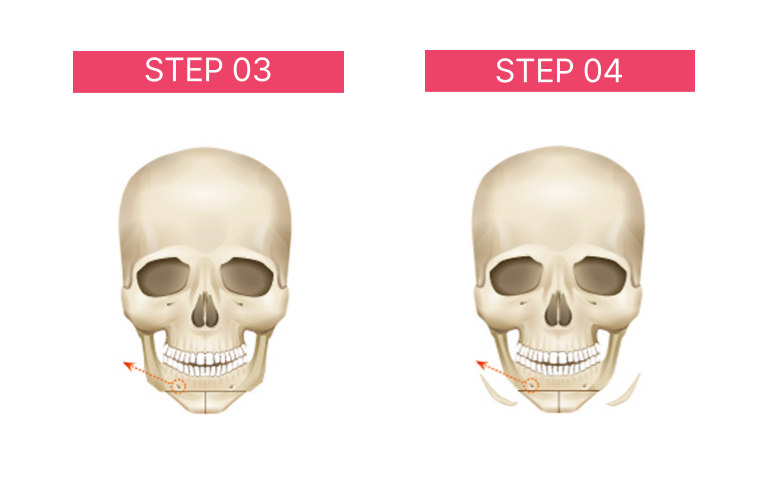 POINT 기존 사각턱축소술에서 턱끝 중간 부분의 뼈를 제거 하고 모아 주는 T절골술을 동시에 시행!