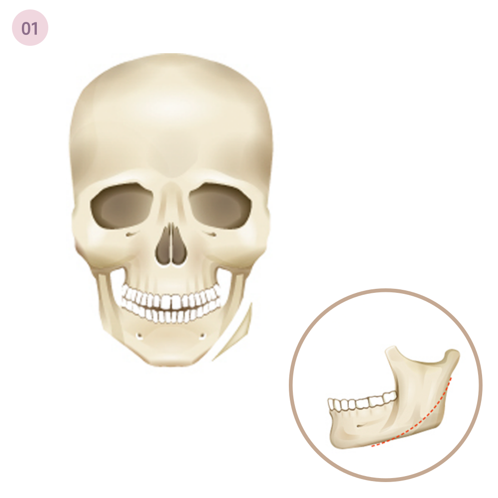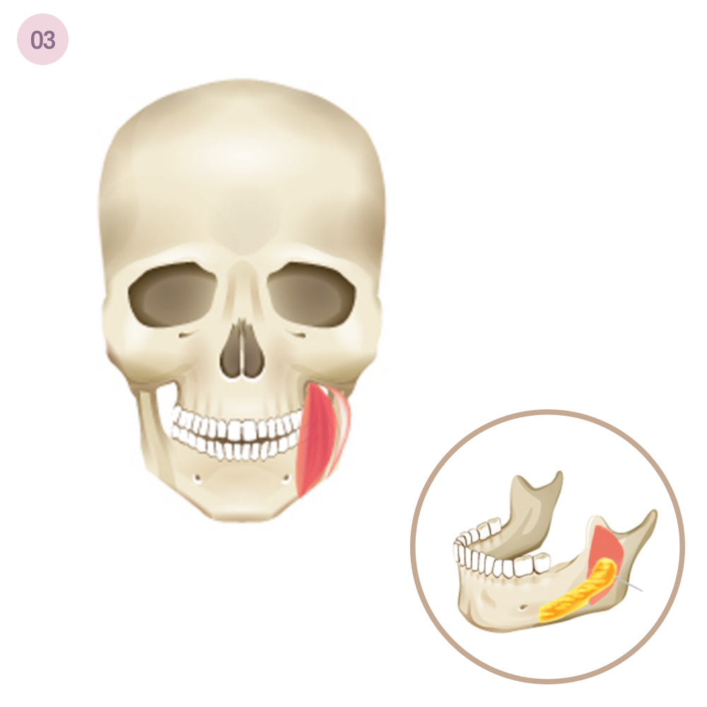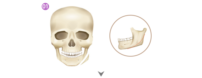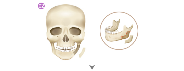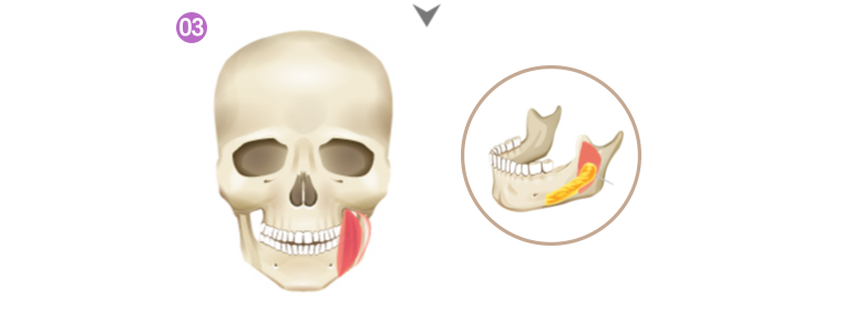 뼈와 겉표면을 적절하게 깎아내어 정면에서 더욱 갸름하게 보이는 효과